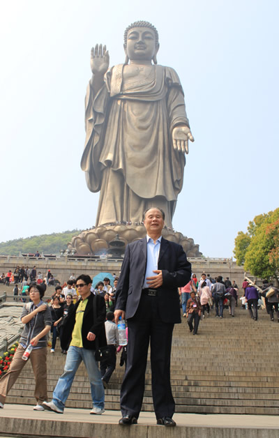 朱建邦同志在无锡灵山大佛下留影纪念
