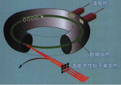 喂喂,先纠正一下,人家可不是铁桶,而是用特殊材料制桶的复杂设备,主要部分是环形真室管道。它的真名叫托卡马克,之所以被称为人造太阳,是因为它产生能量的原理和太阳产生能量的原理类似。在极高的温度下,太阳上的氢原子核先聚合成氘原子核和氚原子核,最后聚合成氦原子核,即发生了多次核聚变反应,并释放出巨大的能量。有所不同的是,在人造太阳里发生核聚变反应的不是氢原子核,而是氘原子核和氚原子核。