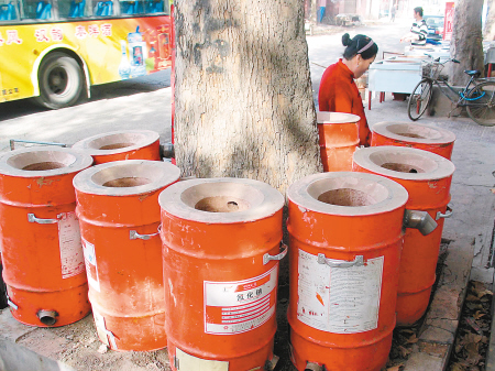 “这炉子咋是用氰化钠钢桶改装的?”记者多次用这种惊讶的口气对经营者说,但他们好像对此早已习以为常。一位操着陕北口音的老板还反问记者:“氰化钠是啥?”他的徒弟则抓着两手泥巴,一边箍炉子一边笑着说,老板不识字,不知道钢桶上写着什么。