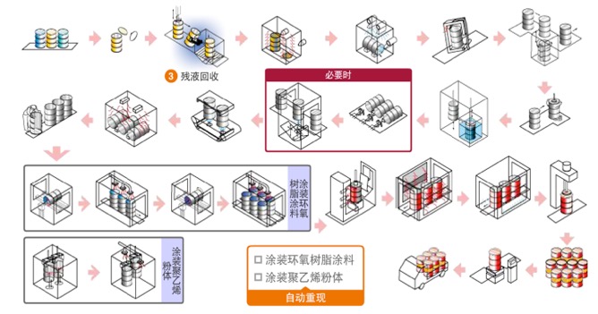 在日本,所有的新钢桶厂都有旧桶翻新生产线。
