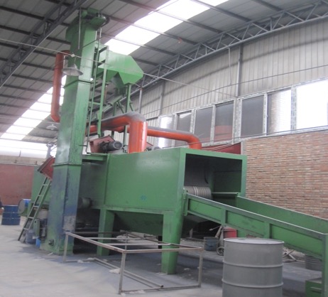 4) 链洗:本工序只针对内容物粘稠度比较大的如树脂桶等,可使用多棱钢链和少量含清洗剂自来水,通过旋转研磨对桶内部清洗。