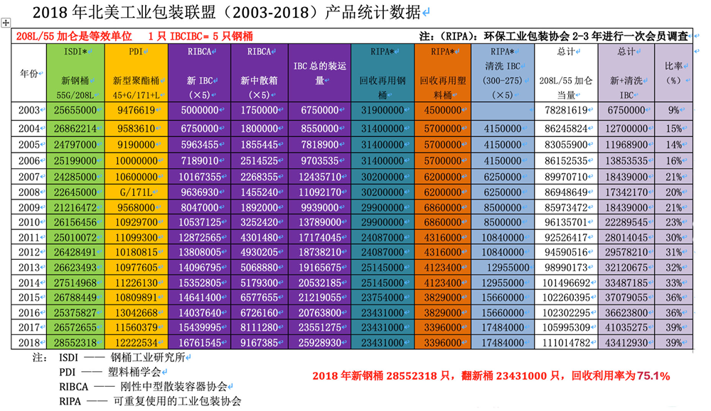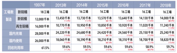 2018年日本钢桶翻新再用、回收及新钢桶补充