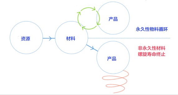 传统的经济方式是:按照“资源→生产制造→废物→排放”和“资源→生产制造→产品→消费使用→废物→排放”的流程运作的非循环或单向直线式的技术经济模式