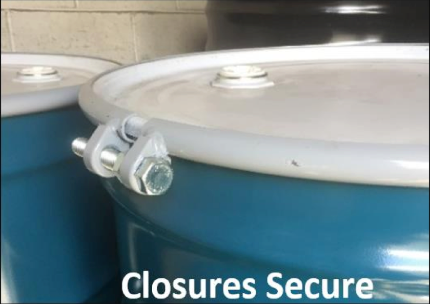 根据美国联邦监管则49 CFR 173.29(a),和美国运输部(DOT)要求运输未清洁的旧钢桶必须做到: