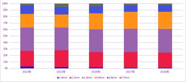 三、废钢桶壁厚对再生利用方式和安全使用影响较大。由于缺乏废钢桶壁厚的统一标准,再生后的废钢桶安全性难以保障。钢桶使用企业通过减小钢桶壁厚来降低包装成本和废钢桶的处置成本(按照桶的重量 /吨来收取处置费)。按照国际惯例,壁厚 1.5mm的钢桶可重复再生使用 8-10次,但是壁厚 0.8 mm的钢桶很难通过再生恢复其使用功能。薄壁钢桶不仅增加了运输风险,也给废钢桶再生带来了新的难题。