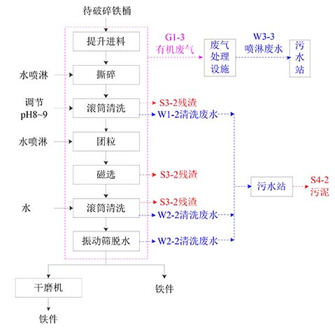 指使用水、溶剂或气体等清洗剂,将 200L闭口废钢桶内、外壁所沾染的含有毒性、腐蚀性等危险物质进行冲洗清除,使钢桶获得再生或制备金属材料的过程,废水实现循环利用。湿法清洗的关键技术是清洗剂的选取和自动化清洗及废水的循环再利用。