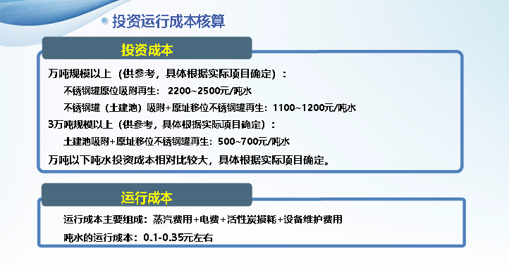 最后,茆总根据工程规模以及工艺选择,对活性炭/活性焦过热蒸汽再生系统的投资运行成本进行了介绍。