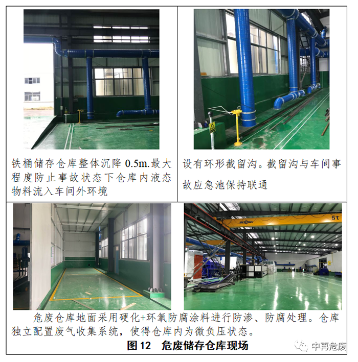 废气收集系统,仓库内为微负压状态。仓库地面设有环形截留沟,且整体沉降0.5 m。最大程度防止事故状态下仓库内液态物料流入车间外环境。