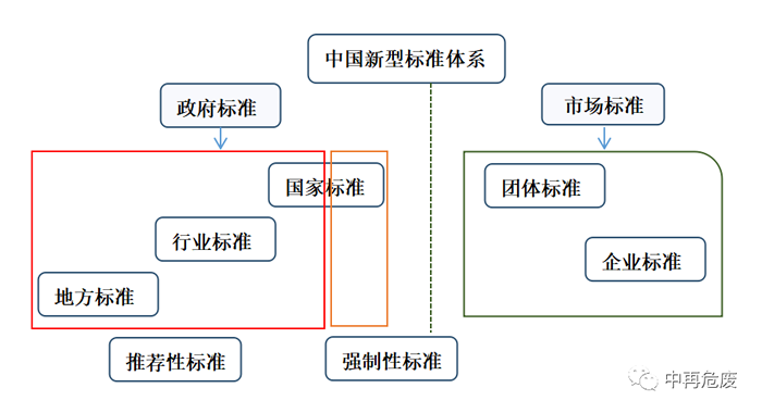 2018年1月1日起实施的《中华人民共和国标准化法》中规定,我国的标准体系由国家标准、行业标准、地方标准、团体标准和企业标准五种类型组成。其中,国家标准、行业标准、地方标准属于政府标准,团体标准和企业标准属于市场标准。政府标准侧重公益性和基础性,市场标准侧重竞争性和创新性,二者互为补充。