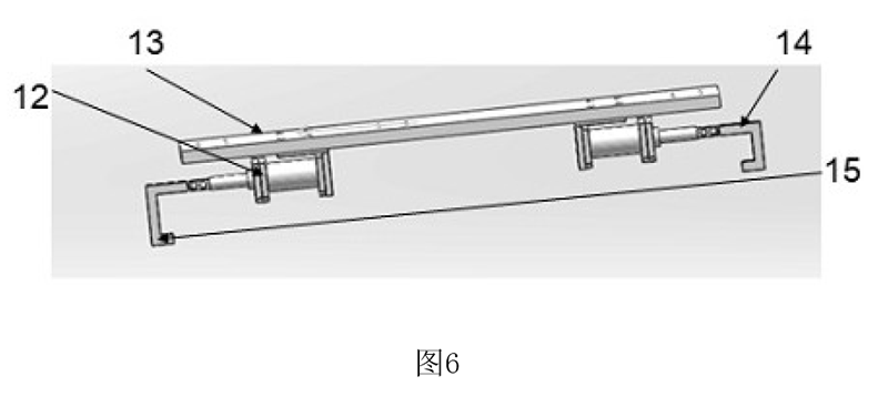 3、根据权利要求1所述的一种废旧油漆桶液氮处理装置,其特征在于:伺服电机9带动联轴器8一起做旋转运动进而带动齿轮7转动;齿轮7与齿条6相互啮合进而将齿轮7的旋转运动转化为齿条6 的水平直线运动;齿条6带动整个齿条支撑板5沿着基架上的导轨做直线运动,基架1上的滑轨与齿条支撑板5的下部相互配合起导向作用;当齿条支撑板5运动至位于液氮槽2正上方时,伺服电机9停止运转;升降气压缸10启动从而带动夹持机构安装板13垂直向下运动;夹紧气压缸12工作并带动夹紧钩14、夹紧钩15向两相向方向运动并夹住铁桶16;当铁桶16完全处于液氮槽2内时,升降气压缸10停止工作;夹紧气压缸12工作并带动夹紧钩14、夹紧钩15向两相背方向运动,以松开铁桶16,铁桶16完全沉入液氮槽2内;升降气压缸10启动并带动夹持机构安装板13垂直向上运动,至最高处时停止运动;液压槽处液压缸3控制活塞的运动从而使槽盖4盖在液氮槽2上;待到达一定冷冻时间后,液压槽处液压缸3控制活塞的运动从而使槽盖4打开;升降气压缸10启动并带动夹持机构安装板13垂直向下运动,直至夹紧钩14与夹紧钩15低于铁桶上边缘时停止;夹紧气压缸12工作并带动夹紧钩14、夹紧钩15向两相向方向运动并夹住铁桶16;升降气压缸12启动并带动夹持机构安装板13做垂直向上运动,夹紧钩15在水平方向上高于夹紧钩14,铁桶向上运动时筒口向下倾斜使液氮倾倒完全;伺服电机9反向工作并带动齿轮7与齿条6啮合运动,进而使齿条支撑板5带动夹紧钩14、夹紧钩15和铁桶16反向运动;夹紧气压缸12工作并带动夹紧钩14与夹紧钩15向两相背方向运动,以松开铁桶16并将铁桶16放入已清洗区域中;夹紧气压缸12工作带动夹紧钩14与夹紧钩15向两相向方向运动并夹住下一个废旧铁桶,不断循环往复实现废旧铁桶的批量清洗处理。