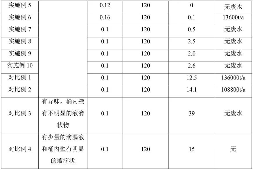 结合实施例1-8和对比例1-2并结合表1和表2可以看出,实施例1-5和实施例7均无废水产生,对水环境保护较好;实施例6中每年预计最大的排水量是13600t,但是对比例1和对比例2的废水排出量是实施例6的8-10倍。由此可知,本申请的废旧钢桶的无害化处理方法可以较大程度下减少污水的排放量,甚至可以做到无废水排放的标准,环境友好;同时废气的各项排放数据处理均符合检测标准。