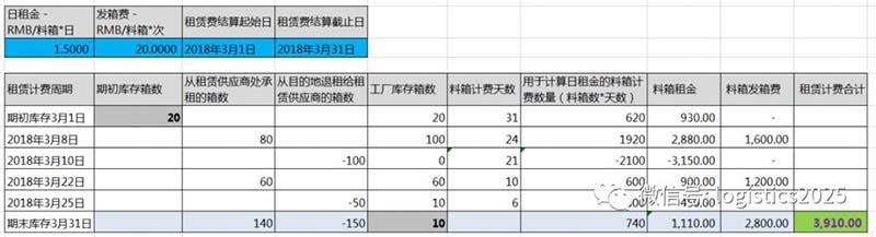 这种计费模式对工厂的实际使用和对账比较方便,工厂每月只需要和供应商核对实际使用的包装数量*合同上签署对应的单个租赁包装价格