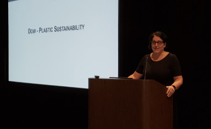 在与供应商博览会参展商的“面对面”休息后,与会者享受了陶氏化学可持续发展和宣传经理婕尼芬· 容克女士的谈话。容克向与会者介绍了公司为实现目标而制定的可持续发展和战略的全面计划。她讨论了工业包装及其在陶氏“循环经济”中所扮演的角色。