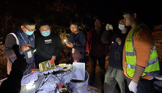 1月22日下 午 , 某生态环境分局接到 群众举报线索 , 称某山坑池塘边发现大 量废油漆桶和 黑色不 明物体 。 接报后 , 某生态环境分局立即联合公安分局、社区前往现场核实 , 展开调查 。
