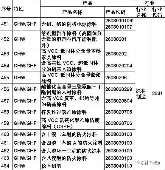被环保部列为“高污染、高环境风险”的涂料产品目录