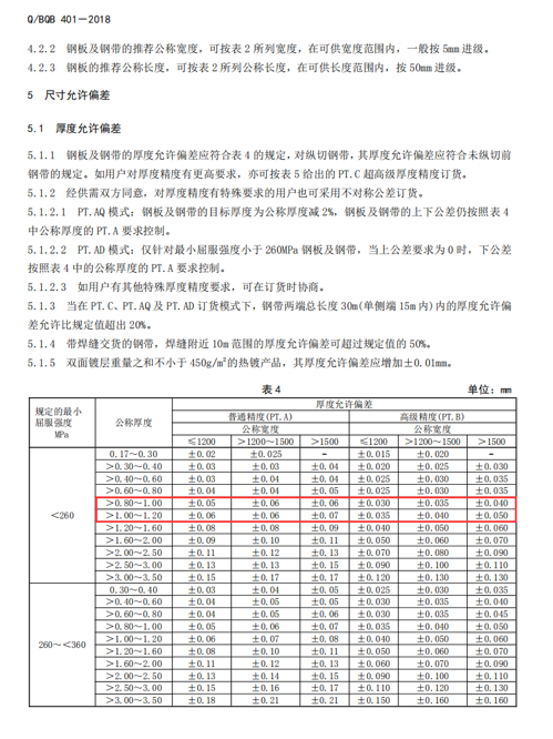 我们先看精度,宝钢的企业标准分为普通精度、高级精度和超高级精度。我们先看钢板厚度:普通精度大约是0.12mm的公差范围,高级精度的公差范围是0.07mm,超高级精度的公差范围是0.06mm,而我们和宝钢订的公差范围是0.05mm,和鞍钢订的公差范围是0.04mm。这个有什么用?我们钢桶企业经常遇到化工企业要求重量公差在±0.3Kg,如果对应18Kg的桶来说,就约等于±2%,对应到1.0mm的钢板上,公差范围就约等于±0.02mm,所以如果钢板厚度公差范围太大,我们就无法满足化工企业的要求,可能后期就需要去做配重处理,这是个很影响生产效率的事情,还会遇到重量配无可配的情况。我们正是了解到钢桶包装行业有这个需求,才利用我们和钢厂的关系以及我们的订货量,在钢材不景气的时候和钢厂签订了这个严格的技术协议。市场上流通的材料都是按照普通精度生产的,高级精度和超高级精度是需要加价的,加价幅度在200~500元/吨不止。