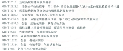 到目前GB/T 325—《包装容器 钢桶》系列标准已全部发布实施。在 GB/T 325.1《包装容器 钢桶 第 1 部分:通用技术条件》的 5.1 条中对钢桶用材提出了“钢板应符合GB/T 2518、GB/T 3274、GB/T 11253、YB/T 055的规定,亦可根据用户要求选用其它薄钢板”的规定,说明钢桶用钢板的选材还是缺乏专用材料。