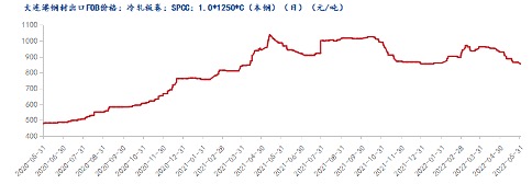图一:国内冷板卷板FOB出口价格 数据来源:钢联数据