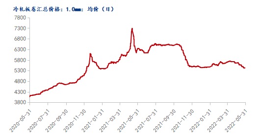 概述:5月冷轧价格整体走势偏弱。5月份国内疫情形势复杂严峻,需求恢复低于预期,导致现货价格呈冲高大幅下跌态势。从供应角度看,6月钢厂接单价格下调后,反馈接单一般;从库存角度看,厂库、社库双双增库,市场面临较大的去库压力。从现阶段情况看,6月市场需求预期较好,国内宏观政策不断释放利好,贸易商心态谨慎乐观,预计6月冷轧价格阶段性上涨。