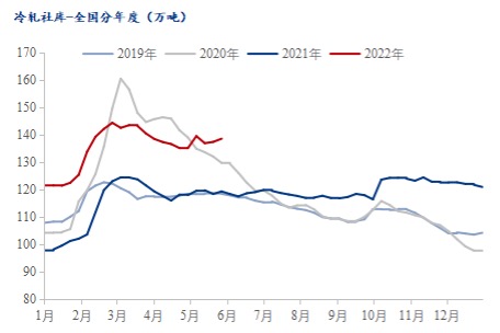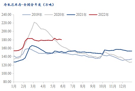 供应方面:从国内主要钢厂了解到,当前钢厂6月接单情况尚不及预期,部分钢厂将冷系铁水转移热轧和中板;近期钢厂虽主动下调接单价格,贸易商反馈订货意愿不是很强。预计6月份Myteel冷轧样本钢厂产能利用率或有下降,整体供应维持高位。