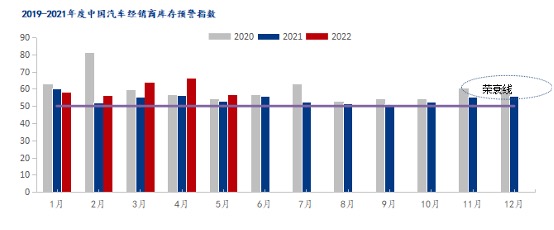 2022年5月31日,中国汽车流通协会发布的最新一期“中国汽车经销商库存预警指数调查”VIA(Vehicle Inventory Alert Index)显示,2022年5月中国汽车经销商库存预警指数为56.8%,同比上升3.9个百分点,环比下降9.6个百分点,库存预警指数位于荣枯线之上。