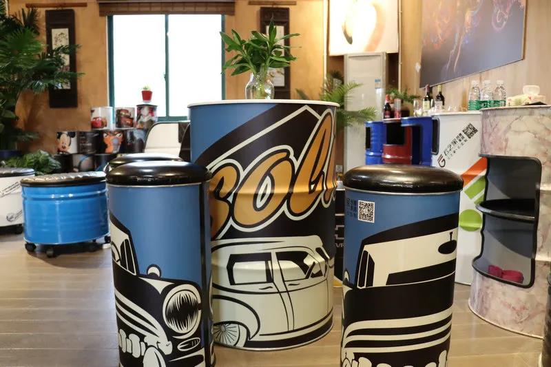 2015年,一个朋友问贝国平要一个钢桶,放在自己刚开业的咖吧里,用作装饰的柜子。受到启发的贝国平由此开辟了制桶路上的另一片天地——桶制家具。靠背椅、茶几、矮凳、高凳、柜子、洗手台、烧烤炉……这些充满工业风的家具,以其靓丽的外观和个性化的设计,很快受到了不少年轻人的青睐。某时尚品牌的实体店,甚至还专门定制这样的家具,在全国门店统一使用。