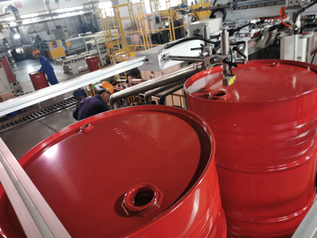 建德旭恒最新钢桶生产线后处理设备在烟台国鑫亮相