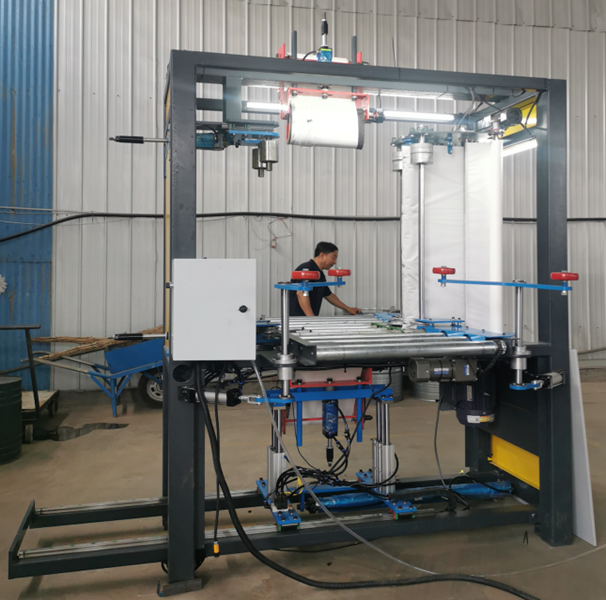 正在调试的立式钢桶外擦设备(同时可擦桶底顶及桶身)