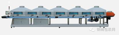 在采用覆膜、预印或预涂钢板制桶的生产线中,桶身经过缝焊工序、补涂工序以后,需要迅速对补涂好的桶身焊缝进行烘干、固化,使桶身补涂处具有与周边预涂表面相同的涂层作用。烘干质量直接影响到补涂质量,甚至整个桶身的质量。所以制桶工艺中对烘干机性能要求很高。