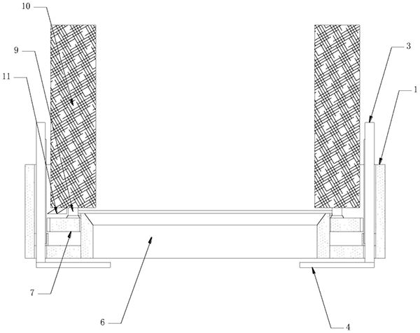 图中:1、外桶套;2、支脚;3、滑架;4、托架;5、顶簧;6、内桶套;7、旋环;8、推旋齿纹;9、架杆;10、刷辊;11、刮条。