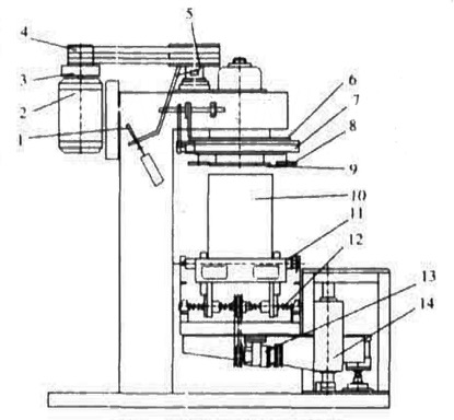 6-凸轮;7-转盘;8-封轮;9-压盖机;10-圆形铁桶;