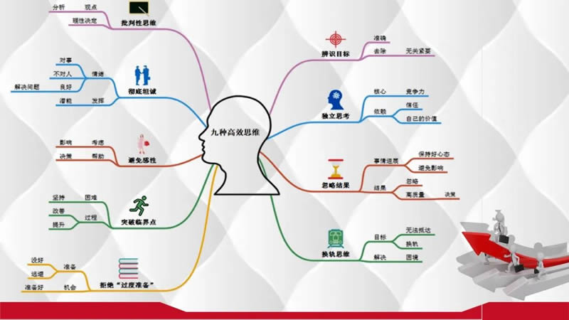 放大格局就要在问题上站得高、看得远。要站在战略的高度,以登泰山而小天下的气度和胸襟,把方向、抓大事、谋全局,而高效思维是让我们当危机来临时,不至于仓皇失措,让我们走出失败的怪圈,通过高效思维更加从容应对生活的残酷。