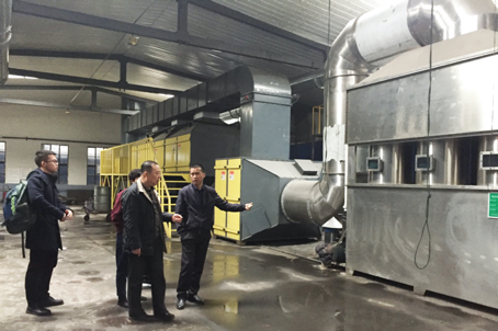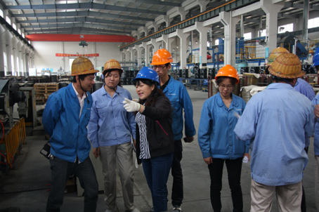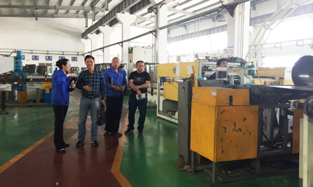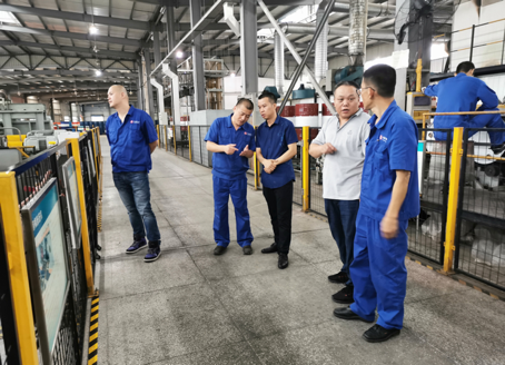 上海凌鑫朱工向王总(左一)介绍生产情况