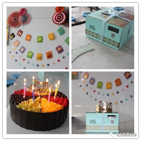 为弘扬公司企业文化,让员工感受到北方制桶设备大家庭的温暖,给员工长期以来的辛勤工作给予肯定和感谢,表达公司对员工的点滴关怀,北方制桶设备会在每季度为员工举办生日party,当季度的寿星们齐聚在一起,其乐融融。