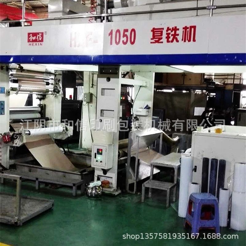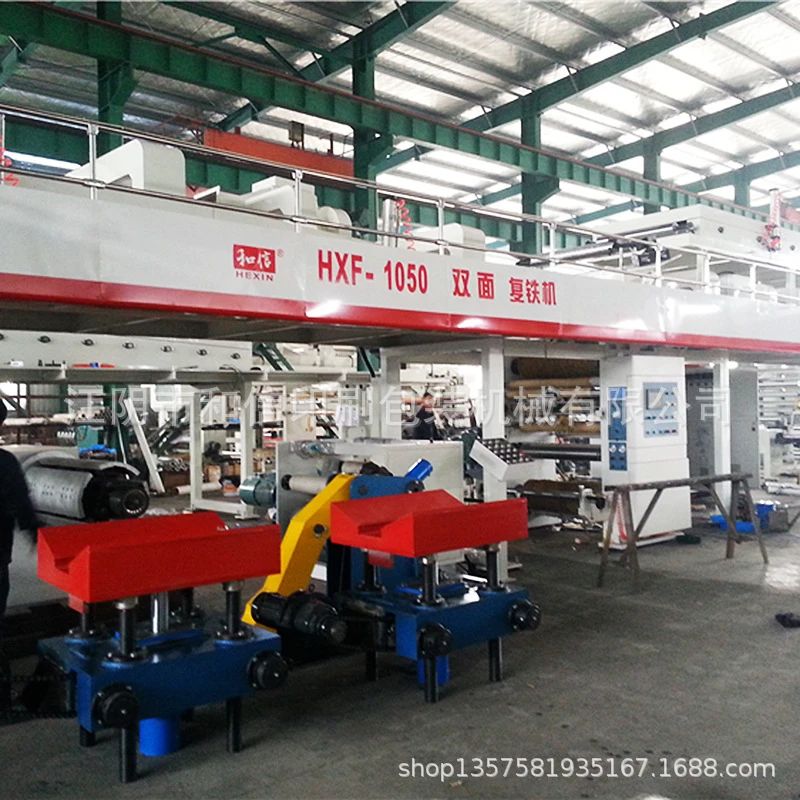 在改进、完善原有凹版印刷机工艺配置的同时,和信公司还投入了不少人力、财力、物力,研发推广双面复膜印铁机。行业人士都有所了解,复膜印铁设备是一种科技含量较高的新产品,尽管海外一些国家如日本美国等早在80年代就推出了此款产品,但在我国却起步较晚,至今仅有很少一些山寨厂家,能简单摹仿一些低端产品,且制作工艺十分粗糙,技术很不成熟。于是,和信公司适时抓住这一机遇,决定把研发复膜印铁机作为重点立项,并组织技术人员认真研究分析铁皮与复膜的物理性能等特点,同时借鉴吸收国外先进科技,结合本公司多年的相关制作经验,终于在不太长的时间内,分别研制推出高级配置和标准配置两种不同规格的HXF—1000B复膜印铁生产线。在加工、装配过程中,和信公司非常讲究主要部件的精度与材质,其中包括选用门子电机、日本松下的编程控制、日本安川变频器、泰隆减速机以及SWC精密润压阀、低摩授气缸等等。由于和信人在确保产品质量方面,做到大事不糊涂,细节不马虎,所以和信公司自主研制的双面复膜印铁机推向市场后,立即受到众多厂家青睐。据营销部统计,仅近两年內,就有8条复膜印铁生产线落户无锡地区,另有福建晋江华联集团、广东中山国辉公司、四川成都恒通公司等知名企业,也纷纷慕名选购了和信公司多台复膜印铁设备。