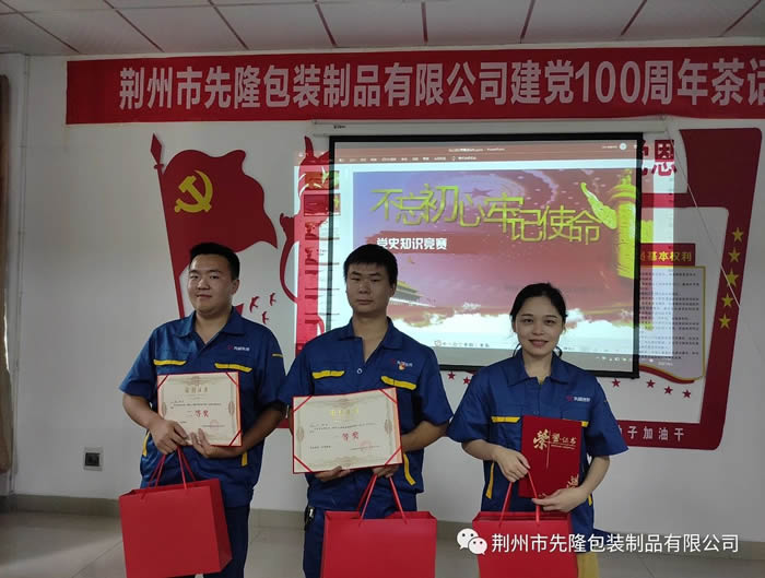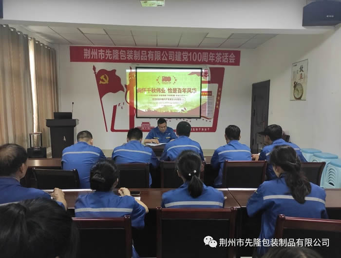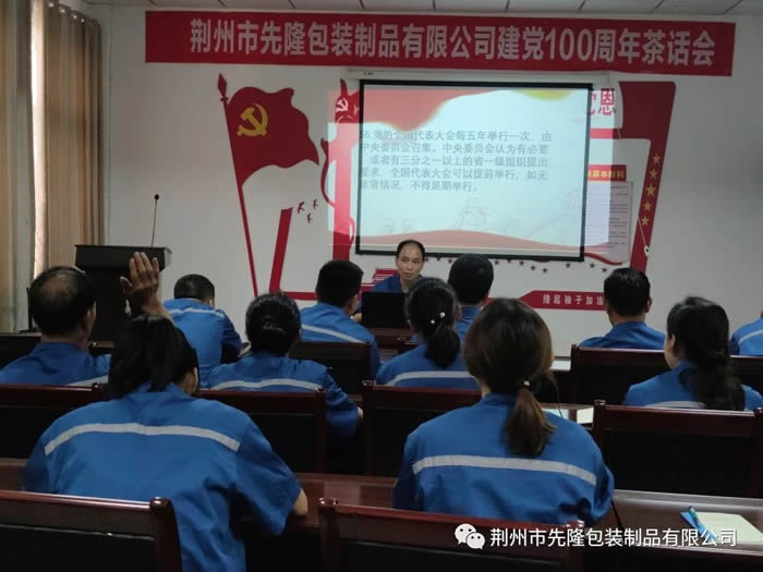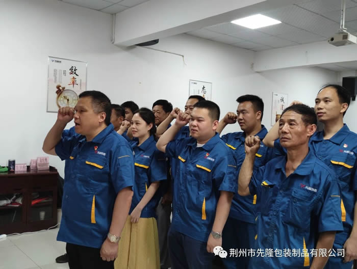 荆州市先隆包装制品有限公司组织开展了一次“学党史、知党恩、跟党走”的主题活动。公司全体党员、预备党员、入党积极分子及各部门非党员代表共18人参加了此次活动。首先,全体党员、预备党员、入党积极分子在支部书记邹乐新同志的带领下重温了入党誓词,在慷慨激昂的宣誓中感受到了对党的崇敬之情和作为一名共产党员光荣而神圣的使命感。