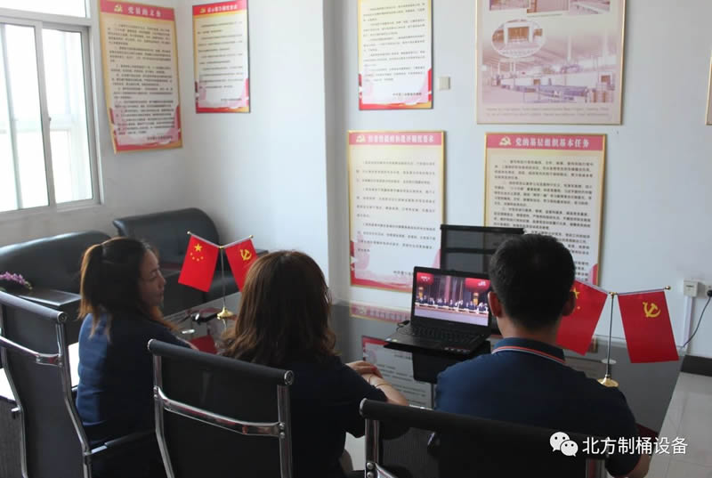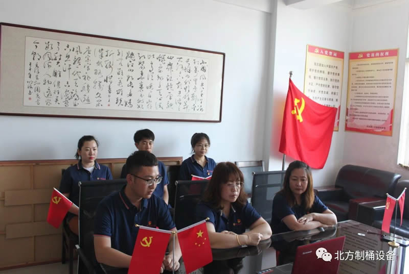 在喜迎中国共产党百年华诞之际,中共营口北方制桶设备科技有限公司党支部7月1日在党支部活动室共同观看中央纪念中国共产党100年大会实况。