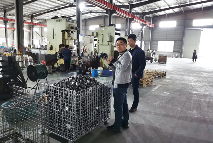建德旭恒的洪厂长在用户现场调试一次冲压锁合装置