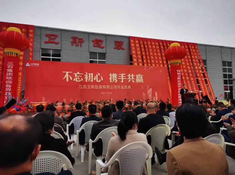 2021年10月24日上午,江苏三石集团旗下的江苏卫斯包装有限公司正式开业,开业典礼上佳宾云集,盛况空前!行业专家辛巧娟女士参加了剪彩仪式,并在典礼上致词。