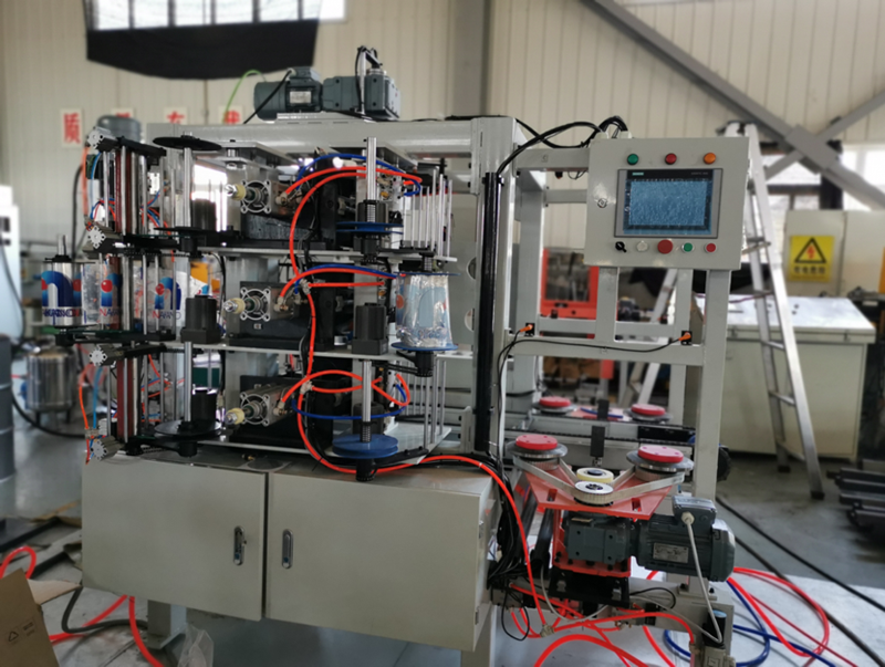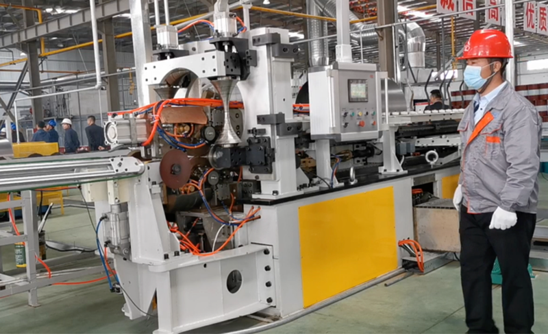 这是天津铭博的另一种机型的焊机生产线,安装在江苏某制桶公司: