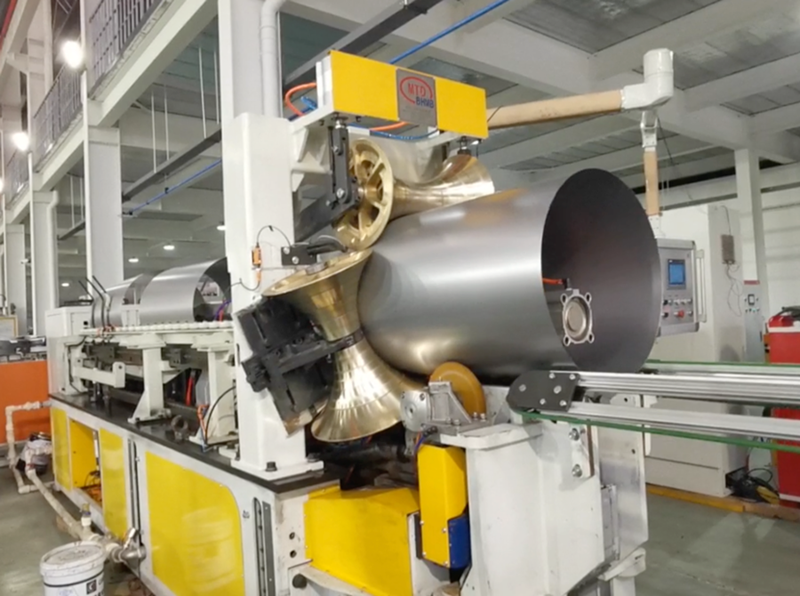 天津滨海铭博自2008年进入钢桶设备生产以来,一直以高端设备面向客户,他们生产的全自动缝焊机,性能稳定,每钟产能为12只,产品销售主要以外销为主,近年来,给国内桶厂供了几十台焊机,大家反馈良好。而铭博人不断进取和创新,设备一直在不断升级改造。改造后的焊机我去天津铭博装配现场曾见过,这次在国内大田东营工厂看到其实际运行情况。