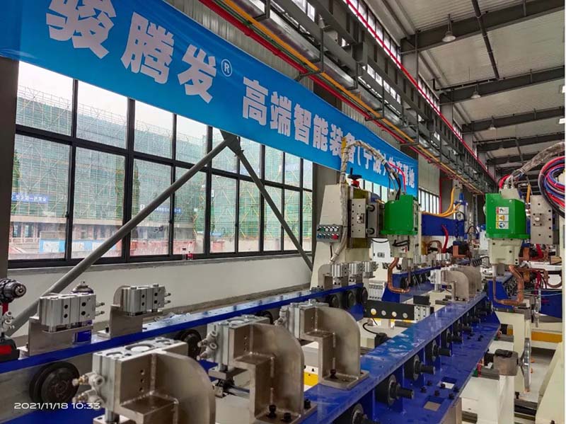 浙江骏腾发自动化科技有限公司是一家专业从事与金属包装产品(桶、罐、框、箱等)生产配套的自动化焊接设备,以及其他自动化焊接专用设备的开发、制造、销售为一体的科技型企业,属于国家政策支持的高端智能装备制造产业。目前他们的产品广泛应用于汽车、家电及金属包装行业,现在海尔、格力、美的、海信、方太、格兰仕,比亚迪、一汽等汽车厂都有他们的焊机,最近他们与中国机械科学研究总院南方中心央企合作,现在已经将公司生产基地搬至中国机械科学研究总院南方中心的厂区,厂房面积3000多平,下图是车间正在组装的两条生产线。