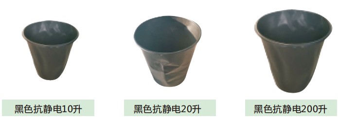 以上三种产品是黑色抗静电硬内胆产品,抗静电数值在6-9次方,因为数值较低,导走静电的速度较快,可以有效的去除静电,用于在涂料,油漆,油脂类产品的厂家减少危废处理的费用。