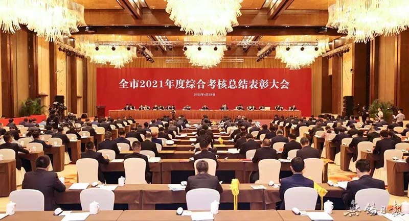 4月29日,市委市政府召开全市2021年度综合考核总结表彰大会,对在省、市年度考核和一季度“担使命作贡献”季季评中表现出色的先进集体和个人进行表彰,分析当前经济形势,部署二季度重点工作,深入推进季季评活动。