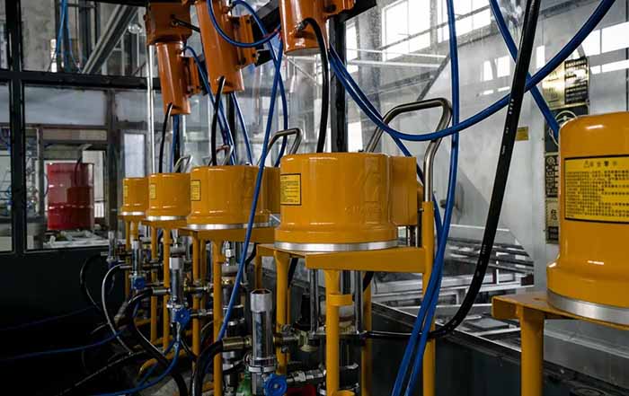 四台长海CH9CⅡ喷涂机,配合24把长海ZPQ自动喷枪,可随时进行单色、双色、三色钢桶的喷涂!