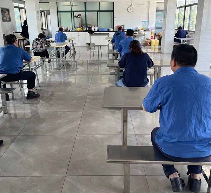 工厂食堂就餐,注意间隔保持距离,避免接触