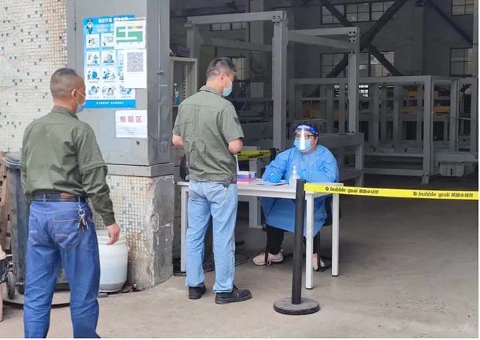 为了保证企业复工复产后的员工健康安全和公司安全生产,公司严格按照防疫要求进行封闭管理。返岗人员必须持48小时核酸阴性报告,由公司派专人点对点接送到公司,经过防疫培训后方可上岗。