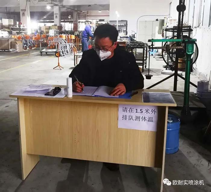 在提前做好准备的前提下,欧耐实喷涂机械公司建立严格的疫情防控工作机制,将健康、安全生产落实到每一人、每一处,有序推进工厂正常进行复工生产,全力满足客户、经销商的供货需求。