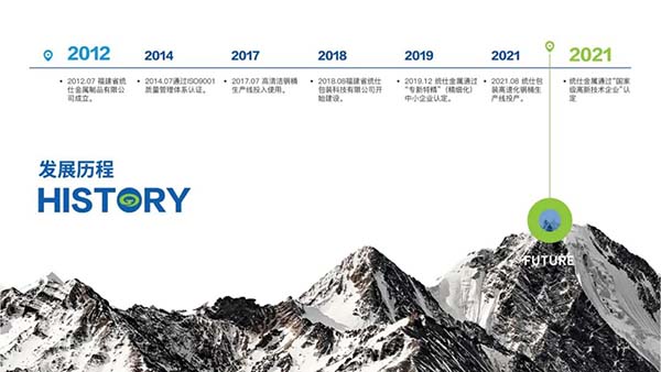 2012年年7月,福建统仕金属制品有限公司成立。2014年7月,通过ISO9001质量管理体系认证。