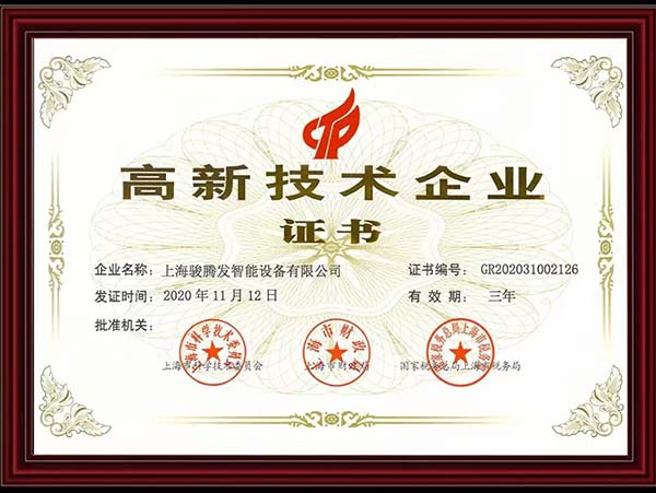 上海骏腾发智能设备有限公司荣获“专精特新”企业称号,并获得高新技术企业证书